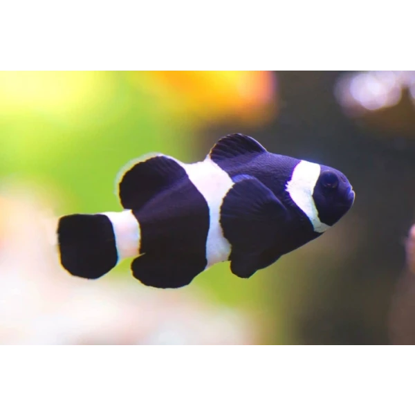 Com suas listras brancas contrastando com o corpo negro, o Palhaço Black se destaca facilmente em qualquer aquário, trazendo elegância e vida ao ambiente.